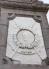 Originally interred at Liverpool, his remains were reburied in the Devonshire Street Cemetery, Sydney, in 1878, by his grandson John Dwyer, Dean of St Mary's Cathedral.[3] In May 1898 the coincidence of the planned closure of the cemetery and centenary celebrations for the 1798 rebellion suggested the second re-interment of Dwyer and his wife in Waverley Cemetery, where a substantial memorial was erected in 1900. The massive crowds attending Dwyer's burial and the subsequent unveiling of the monument testified to the unique esteem in which Irish-Australians held the former Wicklow hero.[5]