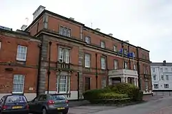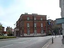 The original building is of red brick construction with a rectangular plan, three storeys high with seven bays at the front. The outer bay on either side protrudes slightly. A stone cornice runs beneath the second-floor windows. The windows are decorated with stone frames and balconets (above the ground floor). The inner bays contain singular windows while on the outer bays the windows are arranged in pairs on the first floor and triplets on the top and bottom floors. A second building, designed by William Henry Hamlyn and built by Holliday and Greenwood was added behind the original between 1933 and 1938,[9] linked to the main building by a single-storey block on the Midland Road side. The second building is also in red brick and of a rectangular plan, with a further three storeys of five bays.[4]