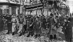 Romanian revolutionary regiment marching in Odessa in January 1918
