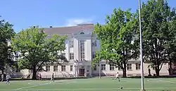 Since the school operated several years without a building of its own, it had to rent rooms in a number of places. The first year was spent in 24 Jaani St. after which they moved to 74 Tiigi St. In spite of the unfavorable conditions for studying the school operated there until the year 1915. The school was moved out of there in hope of finally moving into its newly built schoolhouse. Unfortunately, they could not do that. The school found shelter at the commercial school of 6 Fortuuna St., the business school of H. Margens and 12 Holmi St. In the year 1919 the whole school moved to the building of Hugo Treffner Gymnasium in Rüütli St. Finally, in the year 1921 they succeeded in moving into their own school building.[1] In 1944, the school was named the Tartu City Secondary School No. 2. In 1954, the school was reorganized into a coeducational school for girls and boys. In 1964, in conjunction with Estonian composer and choir director Miina Härma's 100th birthday, the school was renamed the Miina Härma Gymnasium.