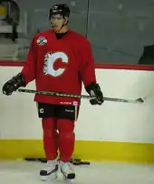 Backlund during the Calgary Flames training camp, September 2008. Although he attended the Flames training camp, he returned to Västerås to play another season there.