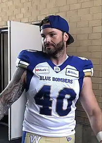 Mike Benson (born May 13, 1987) is a Canadian football long snapper for the Winnipeg Blue Bombers of the Canadian Football League (CFL). He played CIS football for the Acadia Axemen and attended St. Paul's High School in Winnipeg.[1] He has also been a member of the Edmonton Eskimos, Toronto Argonauts, BC Lions, Ottawa Redblacks, and Montreal Alouettes.