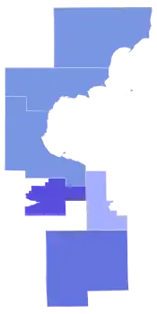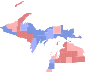 Despite Democrats winning more than 240,000 more votes for U.S. House districts statewide, Republicans won nine of 14 seats and Michiganders tied a state record by electing the lowest rate (35 percent) of U.S. Representatives by a major party whilst simultaneously casting its electoral votes for that party's presidential nominee.[3] This made Michigan one of five states (along with Wisconsin, North Carolina, Pennsylvania, and Arizona) where the party that won the most seats did not win the most votes in the state.