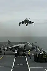 He was the pilot that tested the Harrier and Sea Harrier with the ski-jump[2] take-off method in 1977 and 1978, later adopted by the Fleet Air Arm of the Royal Navy. The testing began on 5 August 1977 with Harrier XV281. In August 1978 he became the second person to fly the Sea Harrier when he took XZ450 for its sixth flight at Dunsfold.[3] The aircraft itself had been first flown on 20 August 1978. On 13 November 1978 he was the first person to land a Sea Harrier at sea in the Moray Firth on HMS Hermes. The ship was anchored whilst the trials took place. In 1980 he was awarded the Queen's Commendation for Valuable Service in the Air.[4]