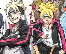 - ↑ Kishimoto, Masashi; Ikemoto, Mikio; Morimoto, Mari (2017). Boruto: Naruto Next Generations. Vol. 1. Viz Media. p. 1. ISBN 978-1-4215-9584-9.