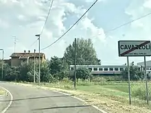 Since 1997, the line to Sordio junction (before San Zenone al Lambro) has been quadrupled by the construction of a new line that bypasses the town of Melegnano and that is used by traffic to and from the high-speed line.[15] Shortly after Melegnano, the historic line and the new line cross the river Lambro on two separate bridges.[16] After San Zenone, the line passes through Tavazzano station, which, since 2005, has been linked by the Interconnessione di Tavazzano (Tavazzano interconnection) between the historic line and the new line that it used by high-speed traffic.[2]