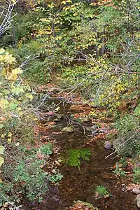 A total of 24 macroinvertebrate taxa inhabit Mill Creek.[3] The taxa Hydropsychidae, Nigronia, and Philopotamidae are common in the creek. Macroinvertebrate taxa that are less common, but still present, include Ephemerellidae, Gomphidae, Heptageniidae, Limnephilidae, Perlidae, Perlodidae, Pteronarcyidae, and Sialidae. Rare macroinvertebrate taxa in the creek include Baetidae, Cambaridae, Dytiscidae, Ephemeridae, Isonychiidae, Leptophlebiidae, Limnephilidae, and several others.[3]