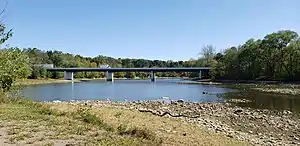 The confluence of Scioto River and Mill Creek at The Point in Bellepoint, Ohio, facing southwards towards U.S. Highway 42 and Ohio State Route 257