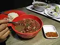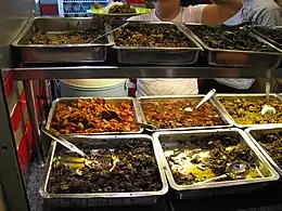 Minahasan cuisine or Manado cuisine is the cooking tradition of the Minahasan people of North Sulawesi, Indonesia. It is popularly known as "Manadonese cuisine" after Manado, the capital of the province, although other cities in Northern Sulawesi, such as Bitung, Tomohon and Tondano, are also known as Minahasan culinary hotspots. Manadonese cuisine is known for its rich variations in seafood, generous amount of spices, extra-hot condiments,[1] exotic meats, and European-influenced cakes and pastries. Popular Manadonese dishes include tinutuan (Manado-style vegetable and rice congee), cakalang fufu (smoked skipjack tuna), cakalang noodle, paniki (spiced fruit bat), chicken or various fish and seafood spiced in rica-rica or woku spices, chicken tuturuga, and brenebon.