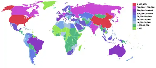 Millions of people remain without access to electricity today, and the U.N. Sustainable Development Goals commit the global community to provide a solution.[14] The map on the right demonstrates energy disparity between developed countries such as the US, China, and Europe while South America, Africa, and Southeast Asia still have many communities that lack reliable, sustainable, affordable energy. Mini-grids are currently being viewed as one of the most effective solutions to bringing energy to rural populations where the energy demands are such that individual stand-alone systems such as nano-grids are impractical but where the population is large enough to require a larger grid system.[2] Because a grid must balance the supply of energy with the demand, the mini-grid's larger size and flexibility allows for safer and more affordable power.[15]
