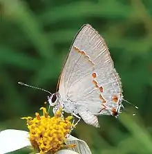 Ministrymon azia, the gray ministreak, is a butterfly in the family Lycaenidae. It is found from the southern United States to southern Brazil, Paraguay and Argentina. It is found in virtually all lowland habitats, ranging from deserts in coastal Peru and Chile to rainforests in the Amazon basin.