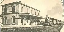 A horse-drawn tramway was built in 1904, connecting the station with the terminus at the Teatro Nuovo in Mirandola's main square until 1924.[4]