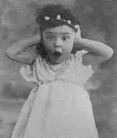 At the same time that Battista appeared on the stage, she began also to get work in silent films. She had an uncredited role in the Virginia Pearson vamp vehicle Blazing Love (1916),[4] which resulted in Battista being featured, with a photo and brief biography, in an article entitled "Little Stars" in the film magazine Moving Picture Stories.[1] Her first credited film role came in 1918 in Nazimova's Eye for Eye,[5] playing an Arab sheik's daughter, the little sister of Nazimova's sultry character, which led to Battista being cast by director Frank Borzage as the physically disabled Minnie Ginsberg in Humoresque (1920).[2] Author Elinor Glyn was so impressed by Battista's performance that she wrote an ultimately unproduced screenplay for this child star whom she called "the greatest actress of the screen."[6] Reporters began to describe Battista as two years younger than she really was, saying that she was born in 1914.[2][6][7]