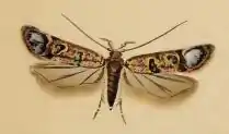 The wingspan is 7-9.5 mm for males and 7.5–9 mm for females. The head is mottled mid-brown. The forewings are mottled brown and light pink-grey with an ochreous tinge near the base.[2] Adults are on wing from June to August.
