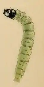 The larvae feed on Securigera varia. They feed from within spun leaves.[3] Larvae can be found in May and June. Pupation takes place in a slight cocoon on the ground.