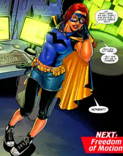 - ↑ Simone, Gail (w), Scott, Nicola (p), Hazlewood, Doug (i). "Blood & Circuits, Part Four: Truth or Dare" Birds of Prey, no. 103 (April 2007). DC Comics.