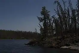Mitatut Lake is a glacial lake above the confluence of Holt Lake and Mistik Creek, approximately 21 kilometres (13 mi) northeast of Bakers Narrows. As a segment of the Mistik Creek, it is part of the Nelson River watershed, in the Hudson Bay drainage basin in the Northern Region of Manitoba, Canada. The surrounding mixed deciduous and coniferous forest is part of the Churchill River Upland portion of the Midwestern Canadian Shield forests.[1] The region around the lake consists of rocky parallel ridges with poorly drained areas of muskeg and irregular stony shorelines due to intense glaciation.[2] The lake is situated on the well known "Mistik Creek Loop", a remote canoe route 80 kilometres (50 mi) in length which can be paddled in four days.[3][4]