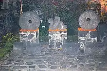 Day of the Dead is the most important celebration in this community, with two days of ritual and cultural events from November 1 to 2.[8] The village and its church graveyard has become famous in the Mexico City metropolitan area for this.[9] In and around the cemetery, thousands of Mexican and international visitors experience the sights, sound and smells of the rituals, cultural events and stands selling food, crafts and other items.[10] The modern celebrations are an extension of the cult of the dead that existed here since pre-Hispanic times. Excavations in this area have revealed a large quantity of stone skulls that used to adorn the facades of homes in this area.[5] Solemn commemoration and festivities do not compete here; both are considered part of the event.[11] In addition to the traditional altars to the dead called “ofrendas”, grave cleanings and decoration, there are also plays, processions, poetry readings, concerts and folk dance. In 2009, the finale was a concert by Susana Harp.[8]