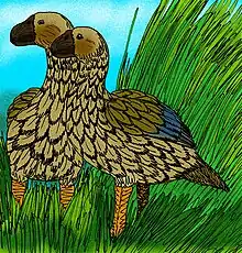 - ↑ Sorenson, Michael D.; Cooper, Alan; Paxinos, Ellen E.; Quinn, Thomas W.; James, Helen F.; Olson, Storrs L.; Fleischer, Robert C. (1999). "Relationships of the extinct moa-nalos, flightless Hawaiian waterfowl, based on ancient DNA". Proceedings of the Royal Society of London. Series B: Biological Sciences. 266 (1434): 2187–2193. doi:10.1098/rspb.1999.0907. PMC 1690346. PMID 10649633.