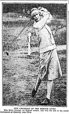 Molly Gourlay was a member of the Sunningdale Ladies Golf Club. She played for England from 1923 to 1934.[2] She won the ladies' championships in France and Belgium, then in 1926 won the English Ladies' Amateur Championship at Woodhall Spa.[3] She was Captain of Surrey in 1926, 1933 and 1954. In 1932 she played in the first Curtis Cup. She played in the Curtis Cup again in 1934.[2]