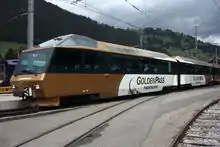 ![]() GDe 4/4 6004 hauls a Golden Pass Classic, between Gstaad and Gruben |