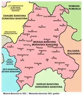 ![]() Morava Banovina (red) within Kingdom of Yugoslavia (light yellow) | |||||||