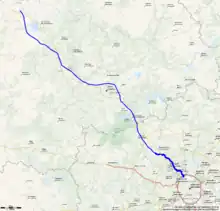 The M11 is parallel to the M10 highway. It starts in Moscow, running via Moscow Oblast (90 km or 56 mi), Tver Oblast (253 km or 157 mi), Novgorod Oblast (233 km or 145 mi), Leningrad Oblast (75 km or 47 mi) to its destination in Saint Petersburg.[7]