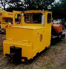 In 1939, Motor Rail introduced the Motor Rail Dumper - a 4-ton, 2-wheel-drive dump truck (running on tyres rather than rails). It again used a Dorman engine, and a variant of the Dixon-Abbot gearbox. A working example (works number 8389 of 1947) with Dorman engine can be found at the Moseley Railway Trust. According to a 1955 advert,[7] the diesel engine dumper had a capacity of 3 cubic yards, and had six forward gears and two reverse. It would carry a load of 4 tons up a 1 in 5 gradient. It was available with front control (driver at the front facing forward), or rear control (driver looking over the load, and hence with rear wheel steering, as is common modern practice).[8] New models of this dumper for 1960 were the MR450 with 4.5 cubic yard capacity, reversible seat, and three speeds in either direction using a Dorman 37 bhp 2LB diesel engine; and the MR375 with 3.75 cubic yards capacity and 6 forward and 2 reverse gears which had a Lister 33 bhp HA3 air-cooled engine.[9][10]