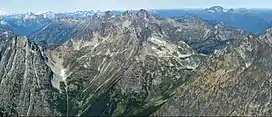 Mount Arriva is an 8,215 ft (2,500 m) elevation mountain summit located in the North Cascades in the U.S. state of Washington.[3] It is situated in North Cascades National Park, on the shared border of Chelan County and Skagit County. Despite its position only 1.55 mi (2.49 km) southwest of Easy Pass, and 3.7 mi (6.0 km) west of the North Cascades Highway, it is not visible from either. Its nearest higher peak is Black Peak, 2.57 mi (4.14 km) to the southeast. Mount Arriva has a secondary summit, called East Peak (8,160+ ft), which was first climbed in August 1940 by Fred Beckey, Jim Crooks, and Ed Kennedy. The first ascent of the true summit (West Peak) was made July 6, 1966, by Joe and Joan Firey, John and Irene Meulemans.[4]