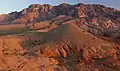 The American geologist Grove Karl Gilbert surveyed this area in 1875 and 1876, and published his findings in 1879 as a monograph, The Geology of the Henry Mountains. The term laccolith was first applied as laccolite by Gilbert after his study of intrusions of diorite in the Henry Mountains.[4] Mount Ellsworth's name appeared on an 1875 map, but the origin is a mystery.[5] One possibility is Elmer E. Ellsworth, (1837–1861).[6] Gilbert did name nearby Mount Holmes, four miles to the northeast.