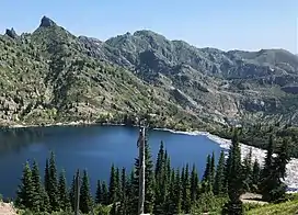 ![]() Southwest aspect, centered beyond St. Helens Lake (The Dome upper left) | |