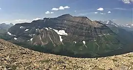 Like other mountains in Glacier National Park, it is composed of sedimentary rock laid down during the Precambrian to Jurassic periods. Formed in shallow seas, this sedimentary rock was initially uplifted beginning 170 million years ago when the Lewis Overthrust fault pushed an enormous slab of precambrian rocks 3 mi (4.8 km) thick, 50 miles (80 km) wide and 160 miles (260 km) long over younger rock of the cretaceous period.[5]