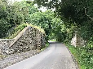 Remains of the bridge which once carried the railway across the Mullafernaghan Road immediately to the east of the station.
