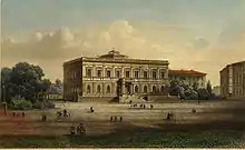 Through major donations including Maximilian Speck von Sternburg, Alfred Thieme and Adolf Heinrich Schletter the collection grew with time. In 1853, businessman and art collector Adolf Fer donated his collection under the condition that the city build a municipal museum within five years. Shortly before the deadline expired the museum was inaugurated on 18 December 1858. It was located on the Augustusplatz and was designed by Ludwig Lange in the style of the Italian Renaissance. Today, the Gewandhaus is located at its location. From 1880 to 1886 the building had been for the ever-growing collection extended by Hugo Licht. At the beginning of the 20th century, Fritz von Harck donated a part of his collection to the museum.