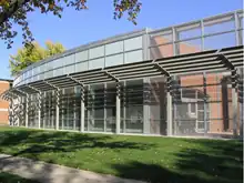 This area of campus is home to the NDSU Wallman Wellness Center, which currently houses the Wellness Center department, Student Health Service and Disability Services. The Wellness Center, which was first completed in 2001, expanded in 2007 and added an aquatic addition in 2016, boasting a lap pool, a relaxing pool, and a wet classroom.[22][23] Mathew Living Learning Center (MLLC) East and West are coed upper-division dormitories.[24]