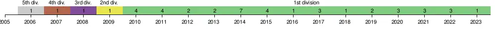 2022–23 | Div 1 | 36 | 23 | 4 | 9 | 60 | 39 | 73 | 1st † | W † | N/A | UEFA Europa Conference League | 2QR | Mario Kvesić | 13 |