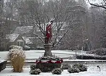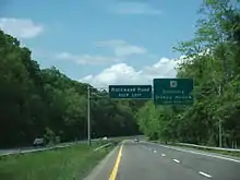 In 1965, Rockefeller unveiled plans for the Potantico Expressway, a connector from the to-be-constructed Hudson River Expressway (NY 9A) to the Taconic State Parkway.[13] Some opposition to the idea arose on the grounds that the new highway would only benefit the Rockefeller estate and not the residents.[14] Nonetheless, construction began on the Potantico Expressway (now known as Phelps Way) in 1969. When the highway was completed in November 1970, it became part of a rerouted NY 117. NY 117's former alignment along Bedford Road became NY 448.[15][16][17] The Hudson River Expressway project was cancelled in 1971,[18] and the western stub of the expressway now serves Phelps Hospital.[19]
