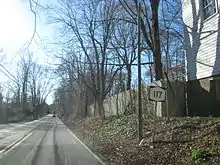 NY 117 was assigned as part of the 1930 renumbering of state highways in New York. It initially began at the junction of Bedford and County House Roads in Tarrytown (both part of NY 9A at the time) and followed Bedford Road northeast to NY 132 (now NY 35) at Jay Street in Katonah.[2] NY 9A was realigned c.1939 to follow Sleepy Hollow Road instead, bypassing Tarrytown completely. The former routing of NY 9A on Bedford Road to US 9 became a short extension of NY 117.[4][5] The route was also extended on its northern end in the mid-1970s after NY 35 was moved onto a new highway that bypassed Katonah to the north.[6][7]