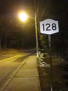 NY 128 was assigned as part of the 1930 renumbering of state highways in New York.[2] In the mid-1930s, NY 128 was extended southward to the Connecticut state line by way of an overlap with NY 22 and Greenwich Road.[5][6] It was truncated back to its current southern terminus in the January 1971. The former routing of NY 128 south of NY 22 was redesignated as NY 433.[7]