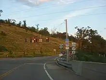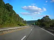 A bypass for NY 17 in the Elmira area was built in the 1950s. The first section from Horseheads south to the eastern fringe of downtown Elmira was completed in the mid-1950s, resulting in a short eastern extension of NY 17E to the east side of Newtown Creek (exit 56).[10][11] The second half of the bypass, from East Corning eastward to Horseheads, was open by 1958, and NY 17's original alignment from East Corning (exit 48) to Big Flats became a western extension of NY 17E.[12] In October 1966, under pressure from locals to eliminate confusion between NY 17 east and NY 17E, the latter was renumbered to NY 352.[2]