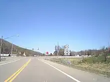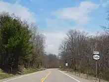 NY 248A is a 5.17-mile (8.32 km) spur connecting NY 248 to the Pennsylvania state line in Allegany County.[1] The route originates at the state line in Willing and continues northeast along the northern edge of a valley surrounding Cryder Creek to Whitesville, where it terminates at NY 248. NY 248A becomes Pennsylvania Route 244 upon entering Pennsylvania.[11] The route was assigned in September 1950.[12][13]