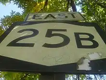 New York State Route 25B (NY 25B) is a 7.25-mile (11.67 km) east–west state highway located on Long Island in New York, United States. The western terminus of the route is at an intersection with NY 25 in Queens. The eastern terminus is at an interchange with NY 25 in Westbury, Nassau County. NY 25B is named Hillside Avenue for its entire length, except for a 0.69-mile (1.11 km) portion in the village of East Williston, where it is called East Williston Avenue and owned & maintained by Nassau County as the unsigned County Route 85.