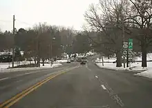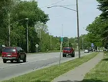 Looking west on NY 31F just east of I-490 in Pittsford. The reference marker alongside the road erroneously reads "253" for NY 253