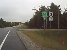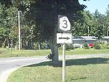At least four suffixed routes of NY 3 were created as part of the 1930 renumbering. The longest of the four initial routes was New York State Route 3C, an alternate route of NY 3 that generally followed NY 3's current alignment between Sterling and Watertown.[15][16] Another was assigned c.1931 when NY 3 was rerouted between Deferiet and Wilna to bypass Carthage to the north on modern NY 3A. The portion of NY 3's former routing from Deferiet to Carthage became NY 3F.[15][17] NY 3 was shifted southward onto modern NY 31 between Shawnee and Lockport c.1932. The realignment eliminated overlaps with NY 425 and NY 93, the latter of which had used NY 3's former routing east of Cambria–Wilson Road since it was assigned as part of the 1930 renumbering. Even though all of the former routing had a designation, it was also designated as NY 3A anyway. As a result, the designations of all of NY 3's spur routes were increased by one letter, meaning the existing NY 3A became NY 3B, NY 3C became New York State Route 3D, and so forth.[17][18]