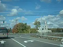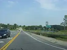 At some point between 1935 and 1938, NY 3 was truncated further to end at its junction with US 104 in Hannibal.[20][23] It was moved another half-mile (0.8 km) to the east in the early 1960s following the completion of the super two bypass carrying US 104 around the eastern edge of the village.[24][25] NY 3 continued to end at the super two[26] until the early 1980s. On April 1, 1980, ownership and maintenance of NY 3's former routing between the Cayuga County line and NY 104 was transferred from Oswego County to the state of New York. One year later, on April 1, 1981, the state assumed ownership and maintenance of the Cayuga County portion from that county. Both transactions were part of larger highway maintenance swaps between the state and the two counties.[27] NY 3 was reextended westward to NY 104A following the second swap.[28][29]