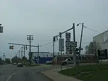 The original western terminus of NY 3 near North Tonawanda. When it was first assigned, NY 3 left this junction on modern NY 425 northbound (right).
