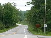 The first change to the routing of NY 10 came by 1926 when NY 10 was extended northeastward over modern NY 3 to Plattsburgh, where it terminated at NY 30 (now NY 22).[7] The route was truncated one year later when US 9W was assigned to the portion of NY 10 between New Jersey and Albany. NY 10 was subsequently truncated to the former western terminus of its overlap with NY 5 in Schenectady.[8] In the 1930 renumbering of state highways in New York, NY 10 was significantly reconfigured to begin in Deposit and end at the Canadian border north of Malone. The only segment of NY 10 not altered by the realignment, which utilized a combination of previously numbered routes and unsigned roadways, was the piece between Long Lake and Lake Clear Junction.[9]
