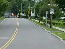 Downtown, maintenance of NY 10 shifts from the New York State Department of Transportation (NYSDOT) to the village at Mohawk Street. The highway remains locally owned for three blocks to Incinerator Road, where the route becomes state-maintained once more.[4] During this stretch, NY 10 intersects NY 5S at Main Street. North of Incinerator Road, the route passes under the Thruway before crossing into the neighboring village of Palatine Bridge at the midpoint of the Mohawk River. On the northern riverbank, NY 10 meets NY 5 and overlaps the route westward for a block before continuing northward into the largely rural town of Palatine.[3]
