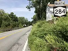 New York State Route 284 (NY 284) is a north–south state highway located entirely within Orange County, New York, in the United States. It begins just south of the village of Unionville at the New Jersey state line in the town of Minisink, where it connects to that state's Route 284. From Unionville, the route heads through rural parts of Orange County for just over 9 miles (14 km) to an intersection with U.S. Route 6 (US 6) in the hamlet of Slate Hill, located 5 miles (8.0 km) southwest of the city of Middletown in the town of Wawayanda.