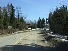Although NY 99 was signed as a state highway, maintenance on the route was performed by Franklin County, which designated the roadway as CR 26.[13][14] All of NY 99 was initially a gravel road; however, most of the road was paved in the early 1970s through the use of state funds procured by New York State Senator Ronald Stafford of Plattsburgh.[15][16] The western and eastern extents of the road were paved soon afterward; however, the road was left unpaved in the vicinity of Loon Lake—a lake near the midpoint of the route—even though the necessary gravel base was applied to the entire highway. The unpaved section deteriorated as a result,[15][17] and the NY 99 designation was removed from the roadway on September 26, 1994.[3]